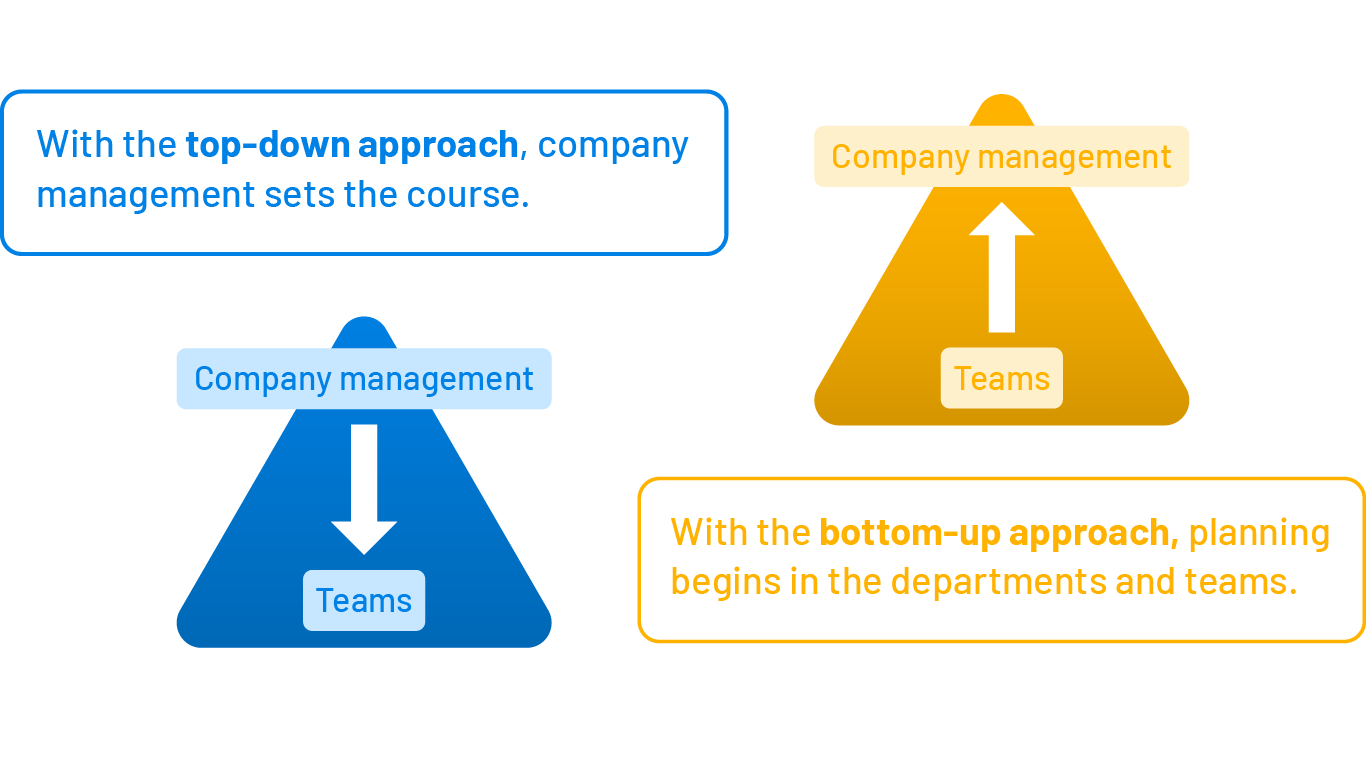 Whether top-down, bottom-up, or countercurrent: each method has its own strengths. Top-down planning delivers speed and centralized control, while bottom-up planning thrives on operational expertise and employee involvement.