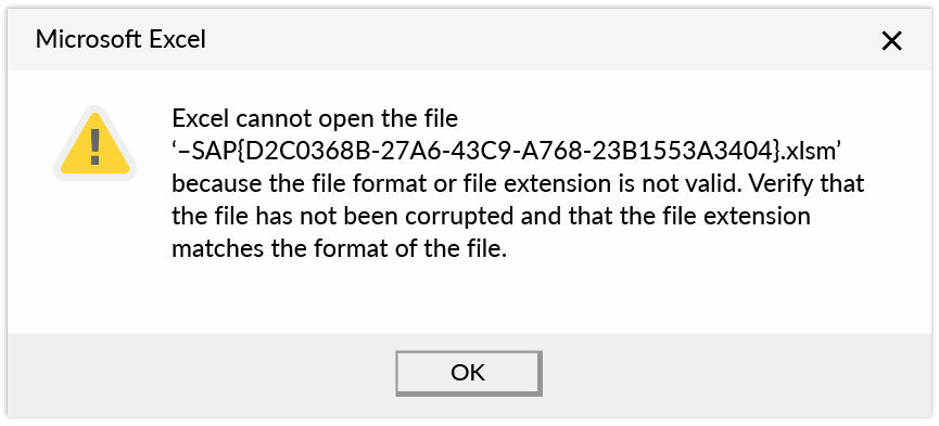 Excel 2007 and "Open file" in SAP with workbook protection of Excel (not the password setting of Allevo in the customizing sheet). In later versions of Excel this may not be the cause.
