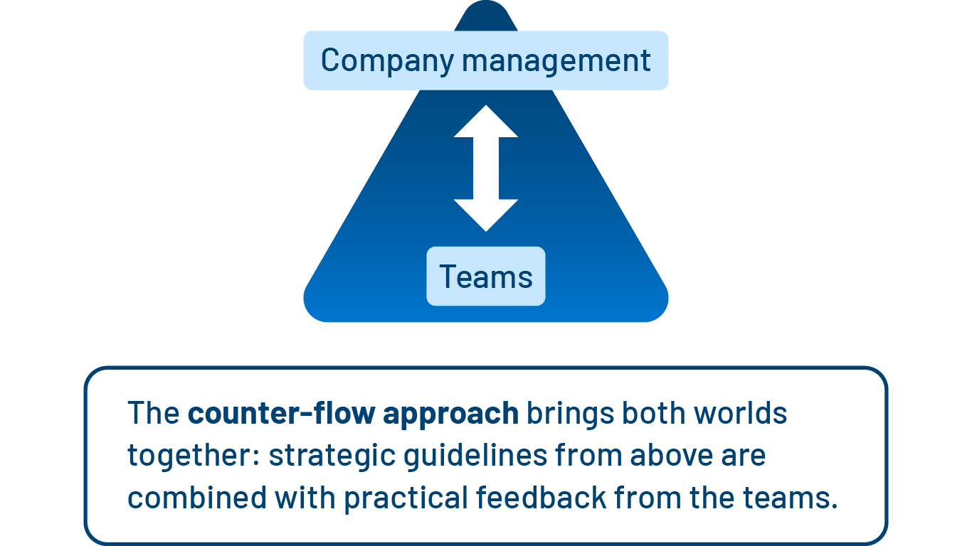 Whether top-down, bottom-up, or countercurrent: each method has its own strengths. Top-down planning delivers speed and centralized control, while bottom-up planning thrives on operational expertise and employee involvement.