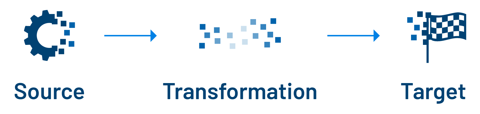 You work with flexible building blocks called Actions. Each Action consists of three components: Source, Transformation, and Target.